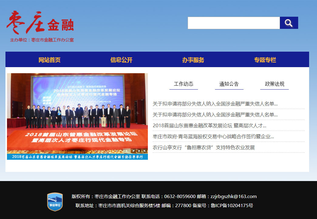 所屬行業(yè): 單位名稱(chēng):棗莊市金融工作辦公室 網(wǎng)站地址:https://www.zzwh.com/