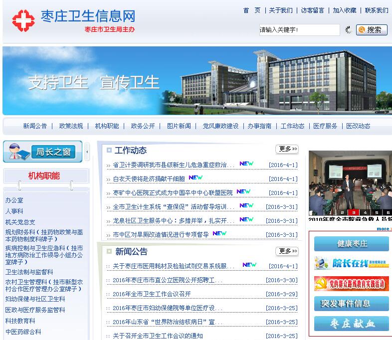 所屬行業(yè):醫(yī)療事業(yè)單位 單位名稱:棗莊市衛(wèi)生信息網(wǎng)網(wǎng)站地址:http://www.zzwh.com/