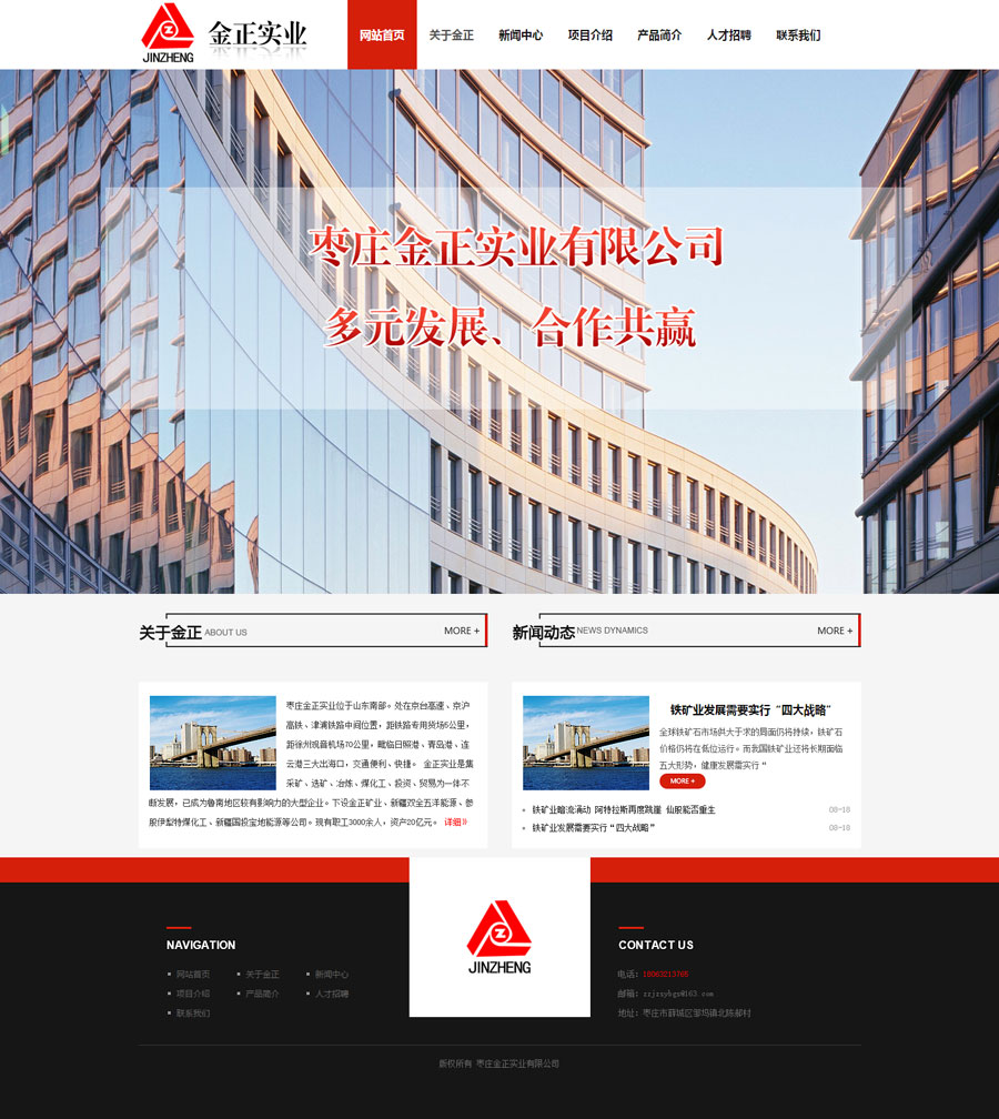 祝賀金正實業(yè)有限公司網(wǎng)站上線 公司介紹: 棗莊金正實業(yè)位于山東南部。處在京臺高速、京滬高鐵、津浦鐵路中間位置,距鐵路專用貨場5公里,距徐州觀音機場70公里,毗臨日照港、青島港、連云港三大出?,交通便利、快捷。 金正實業(yè)是集采礦、選礦、冶煉、煤化工、投資、貿(mào)易為一體不斷發(fā)展,已成為魯南地區(qū)較有影響力的大型企業(yè)。下設(shè)金正礦業(yè)、新疆雙全五洋能源、并參股伊犁特煤化工、新疆國投寶地能源等公司,F(xiàn)有職工3000余人,資產(chǎn)20億元。先后獲得棗莊百強企業(yè)、突出貢獻企業(yè)、誠信經(jīng)營企業(yè)、納稅十強企業(yè)、山東省工會工作先進企業(yè)等榮譽稱號。 金正礦業(yè)年產(chǎn)鐵精粉60萬噸,金正實業(yè)年產(chǎn)鑄造用生鐵26萬噸,主要銷往江蘇、浙江、福建、安徽、河北、山東等地,深受廣大客戶好評。 公司始終秉承“多元發(fā)展、合作共贏”的經(jīng)營理念,遵循“精誠團結(jié)、銳意進取”的企業(yè)精神。竭誠為客戶提供優(yōu)質(zhì)的產(chǎn)品和服務(wù)。真誠歡迎各界同仁前來指導、合作,我們愿與您風雨同舟、攜手共創(chuàng)美好未來。 棗莊金正實業(yè)有限公司